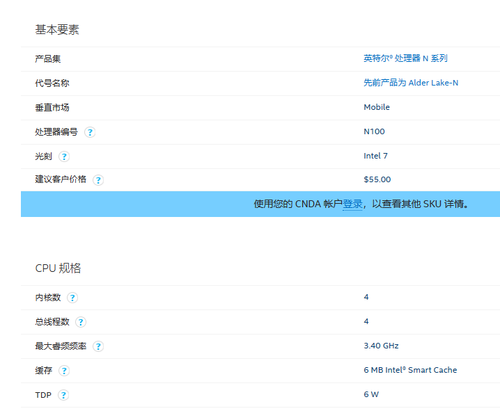 N100是英特爾旗下12代Alder Lake-N系列的一款低功耗寬性能的處理器,該系列還有N200、N300、N305、N97、N50、X7211E、X7213E、X7425E等等,Alder Lake-N系列N100這款處理器為7nm光刻工藝,具有四核四線程性能,待機功耗僅6W,主頻低至0.8G,但它睿頻最高確可以達到3.4G,能同時兼顧功耗和性能。